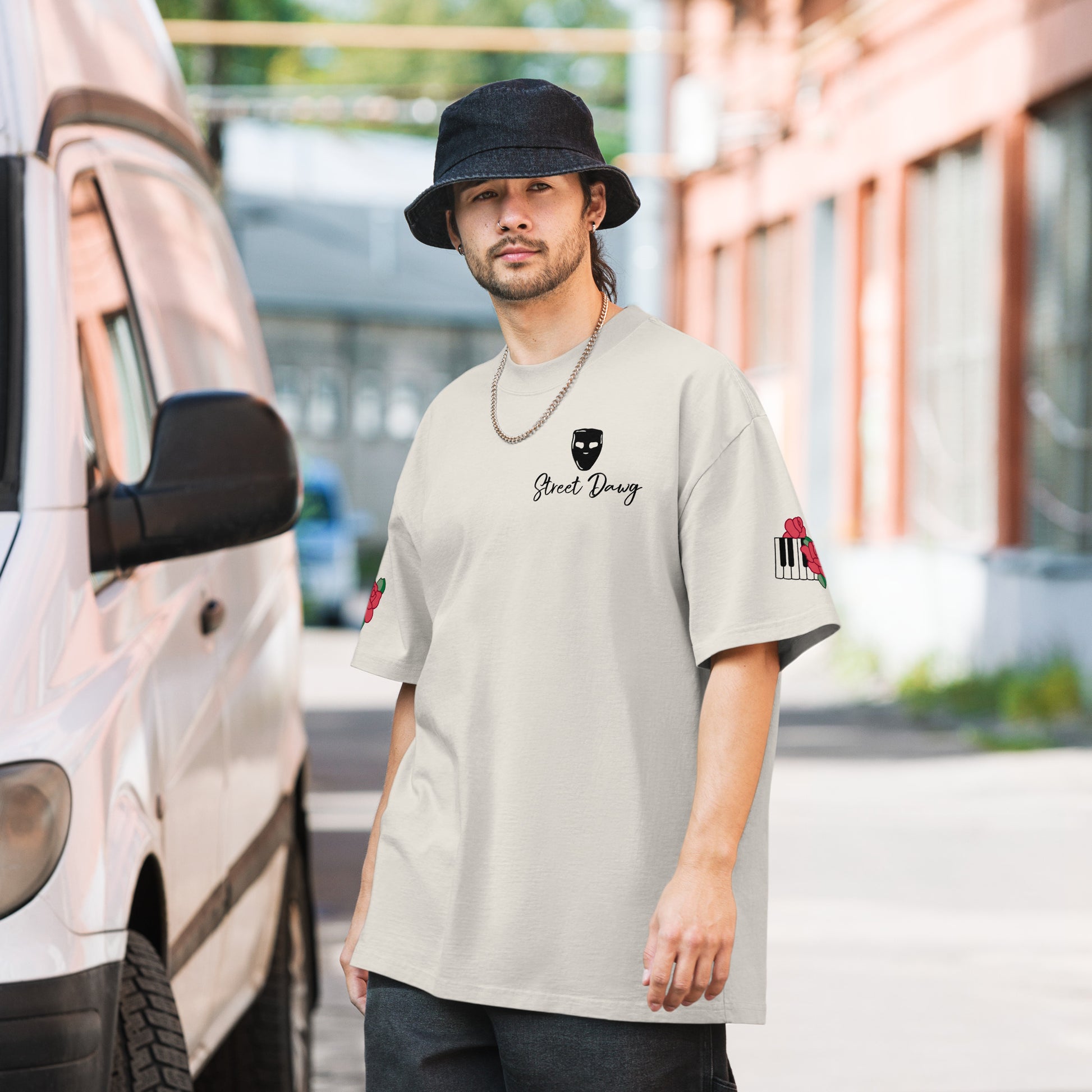 • Boxy, oversized fit